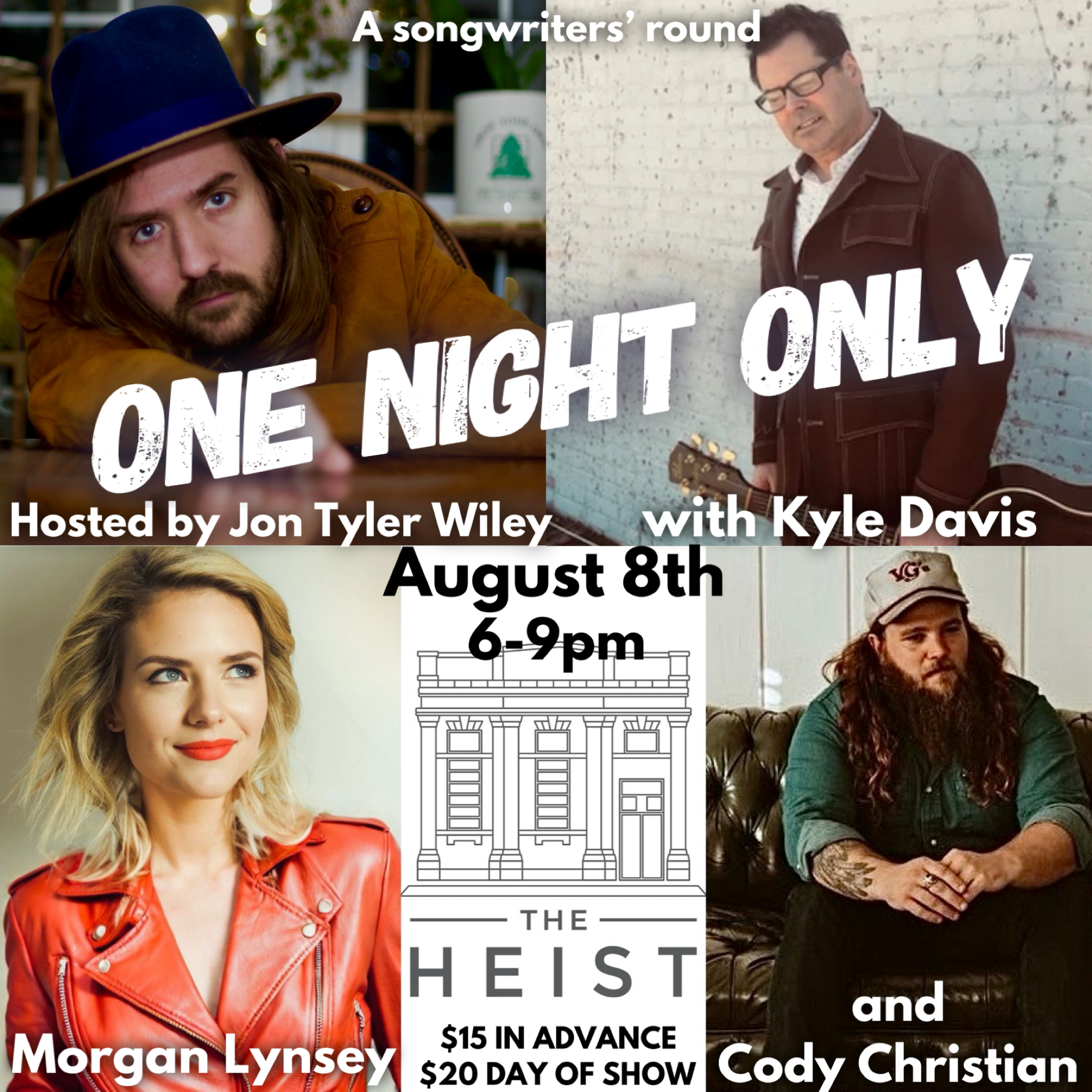 Jon Tyler Wiley hosts an intimate night of song and story. With Kyle Davis, Morgan Lynsey, and Cody Christian.